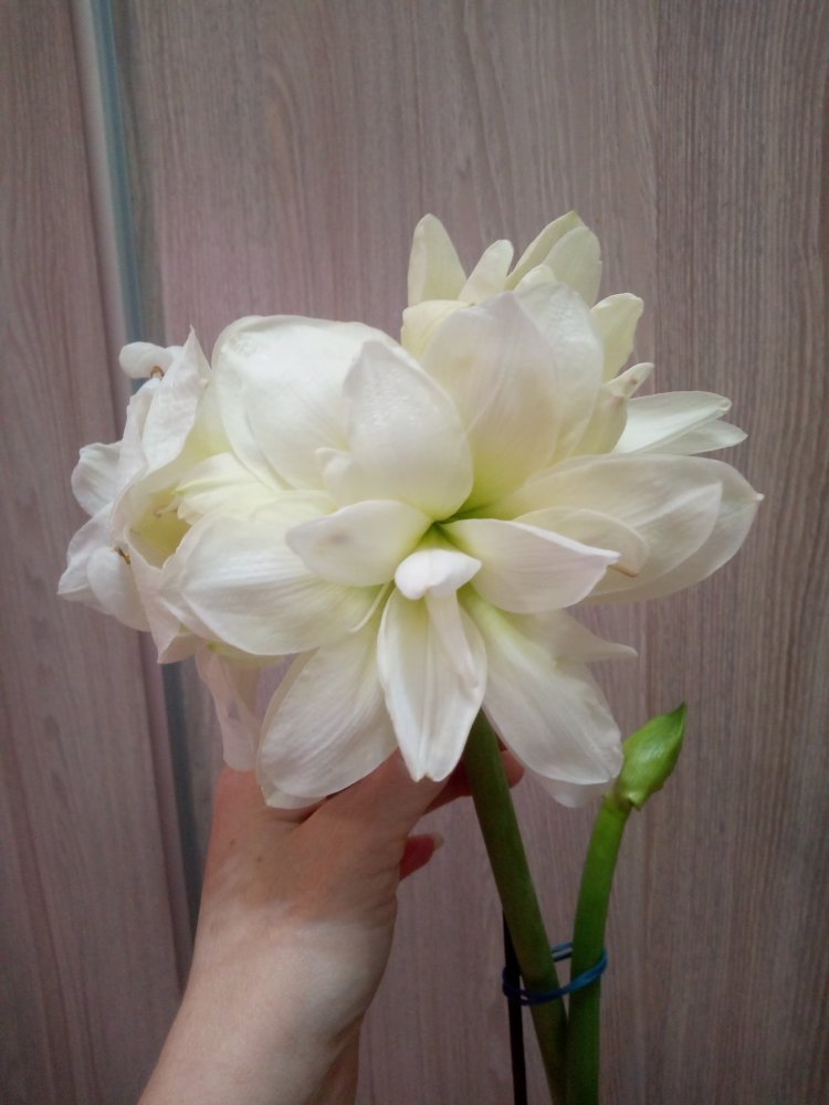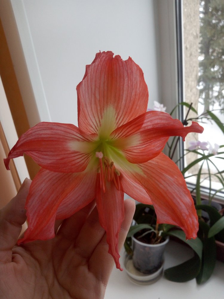 Уже давно отцвёл гиппеаструм, луковка так похудела, что срезала цветонос, поставила в вазу. Думала будет листья растить - пошла вторая стрелка. Красивый конечно, но думаю повторно (при моём уходе) не скоро зацветёт, стоят у меня три товарища и бастуют. Вот зарекалась не покупать гиппы, нет, клюнула