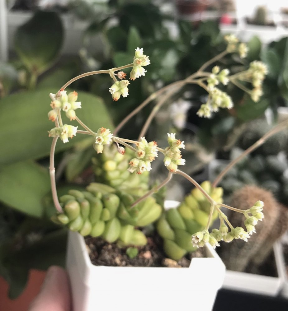 Aeonium mini. Малюсенький эониум, сидит в горшке 5 см. И каждая веточка усыпана яркими, жёлтыми звёздами. Он ещё и пахнет чуть-чуть.