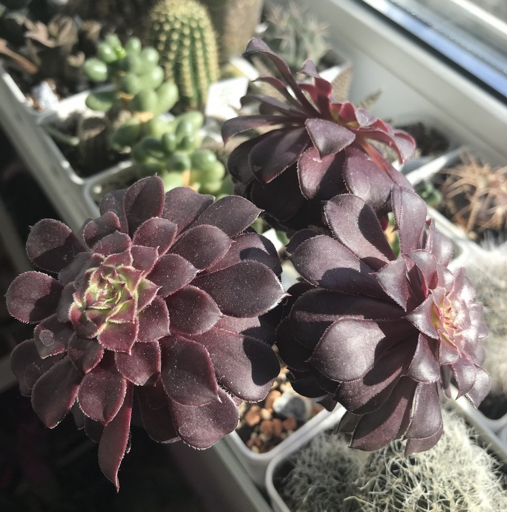 Да, окраска стабильна всегда. И зимой, и летом. Это новые клоны из Чехии... на своих корнях, что редкость. Такие вариегатные кактусы обычно сажают на прививку. А эти растут, ещё и плодятся хорошо. Есть Один нюанс, дети будут разные. Если вырастит на темной стороне мамы, большая вероятность, что будет без красного совсем...