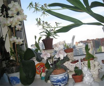 Вот на кухонном окнне получилось уже что-то вроде композиции, а не просто нагромождения горшков...