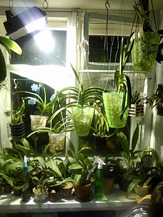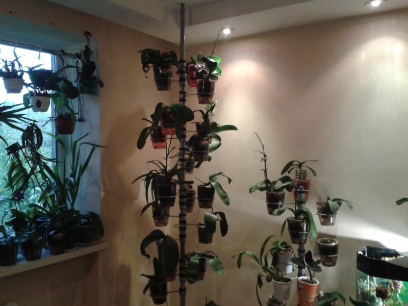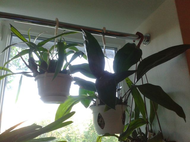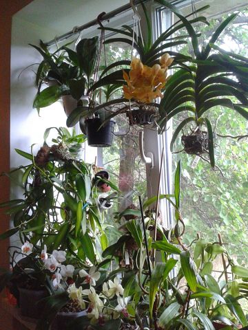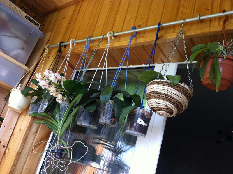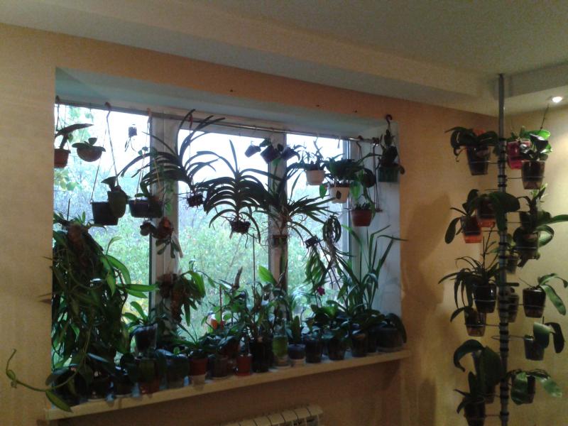 Вот так и живем:girl_wink: Орхи висят на карнизах, поскольку карнизы есть, а шторам места не нашлось и на крючках вкрученных в откосы, плюс гвоздики вбитые в деревянные рамы и натянутая проволока и крючки различные и.....:)):