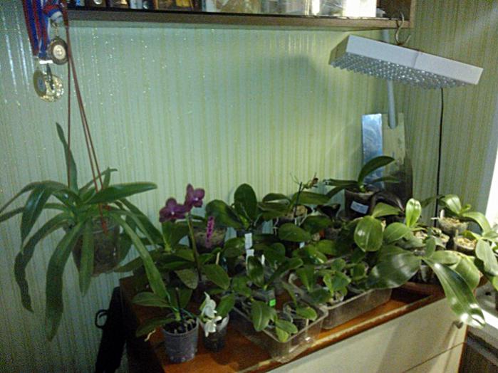 И самое густо населенное орхо-место - это комната сына, южное окно на вес золота, остальные глухой север:girl_expect: Сын конечно ворчит, ругается когда я поливки устраиваю, но пока терпит:angel: Использовано окно и комод рядом с окном.
