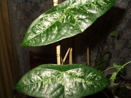 Такой вот он у меня :p Где-то 40% листьев у него пятипалые, остальные трехпалые. Кстати, мой Аметист даже как-то раз цвел не совсем типично, лепестки были окрашены через раз. Вот фото.