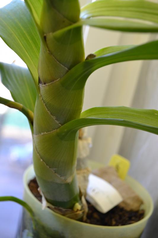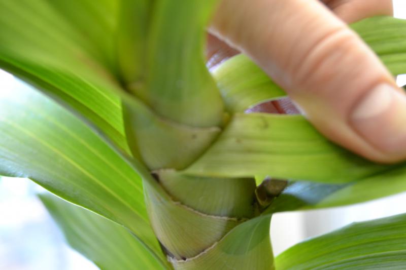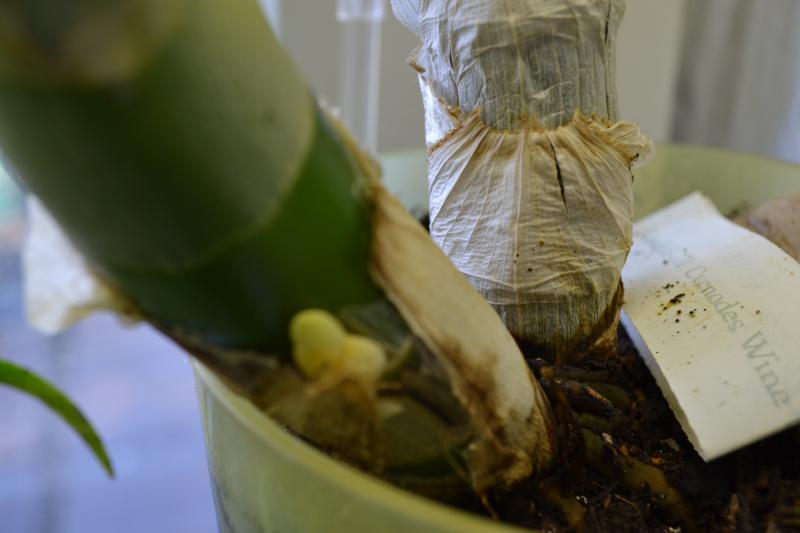 МОя морковка Wine Delight сошла с ума в этом году...Но я очень этому рада :girl_wink: Одним цветоносом она отцвела (показывала в разделе цветения 2013).Сейчас цветет 2-м цветоносом.На днях почти на макушке бульбы нашла еще 1 малюсенький цветонос.А сегодня увидела,что что-то внизу бульбы под кроющими чешуйками топорщится светлое...Убрала чешуйки,а там цветоносик уже около 1,5 см! Вот: