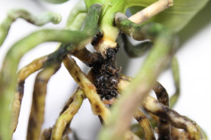 Если вам действительно видится что там гниль (по фото не понятно больше похоже что просто мокрые засохшие корешки)