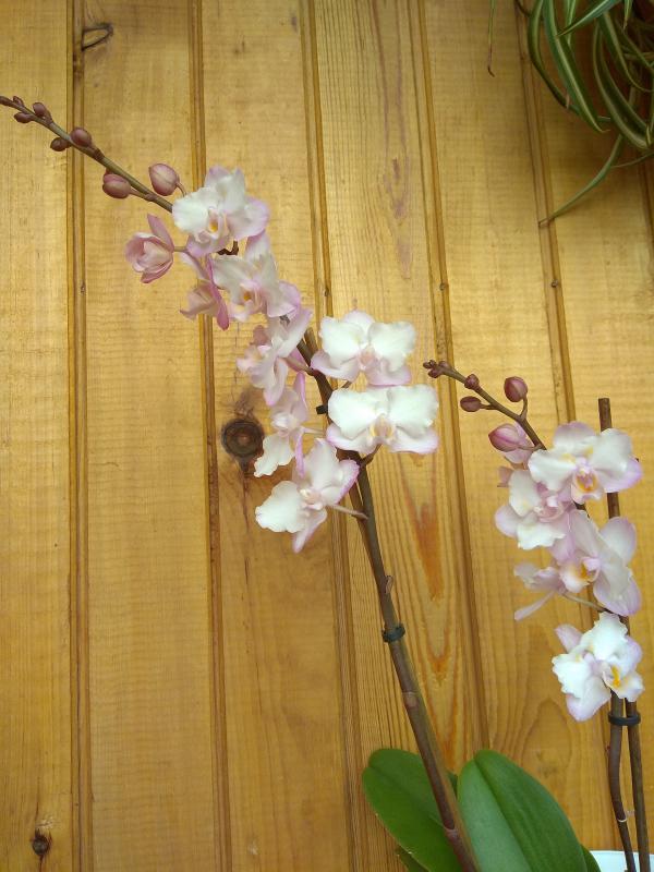 Достойный рост и цветение началось после пересадки в мох. Практически не сушу. Само растение растёт страшно, как у всех, прорывая листья. Место обитания - яркое солнце. Окно притенено маскитной сеткой. Днем на солнышке, очень приятно и нежно пахнет. Подкармливаю мин. Удобрения ми мультифор сухим, в пакете. Жидкое не поняла совсем. Пару раз в месяц поливаю байкалом. Зимой растёт под подсветкой. Утром в 7 включила, вечером в 10 выключила.