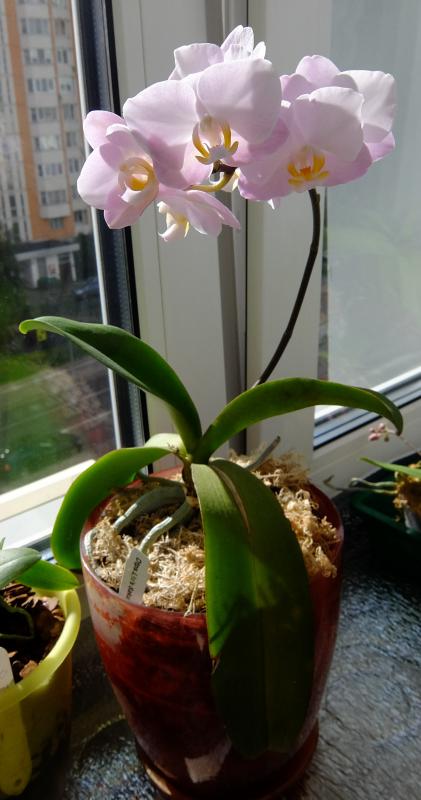 Получила в августе. Сразу посадила в ЗС. Чувствует себя отлично. Сейчас 12 цветов, ещё 3 уже скинула и продолжает наращивать цветонос. Воды пьёт много и все равно листики морщит если во время не полить.