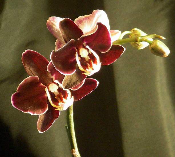 Наверное, у всех Элснеры цветут без нареканий и все, кто получил здоровяков с цветоносами, тихо наслаждаются цветами, потягивай чай, кофе или еще что-нибудь приятное :) Я своего Phal. Taida Pearl `Champion`заказываю второй раз, первый у меня из Германии 2 и по ботве абсолютно другое растение. Поэтому я с нетерпением ждал развития цветоноса, чтоб порадоваться и выразить порицание Германии-2. Но то, что расцвело меня немного расстроило. До сих пор не могу понять, то ли я так лопухнулся, то ли это пересорт (хотя из горшочка торчит парвильная этикетка). На всех фото цветки этого гибрида от темно-красных до просто красных, а у меня вылупилось что-то Евер-Спринговское, почти черное. Даже при фотографирование этого цветка с вспышкой красного цвета как на инетовских фото не получается. Неужели все фото этого гибрида такие подкаршенные в нете, а он действительно относится не к "красным" а скорее к "черным" фаликам? На англо- и франкоязычных фоурмах его позиционирют все же как красный. Буду благодарен, елси кто-то развеет мои сомнения :hi: Красного чемпиона захотелось еще больше, если это не миф :jester: