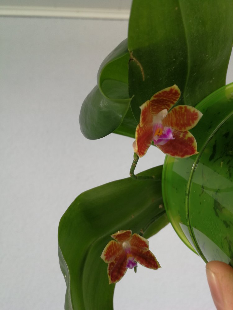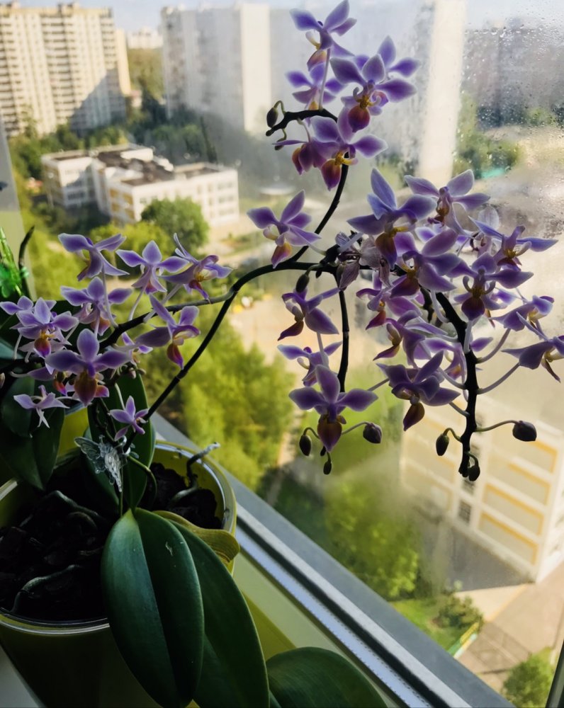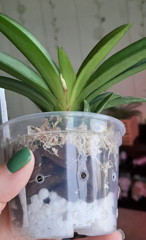 Отпоился быстро, раскрыл листик, выпустил три новых роста-листика и вот появились бутоны на пяти старых цветоносах. Один сегодня раскрылся.