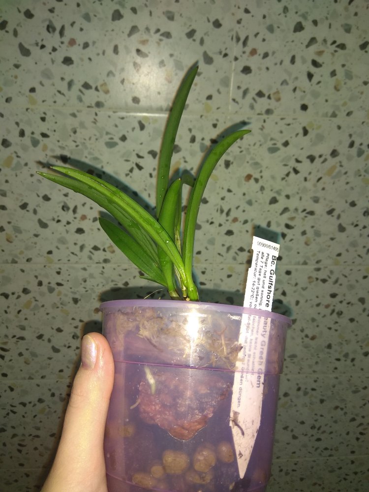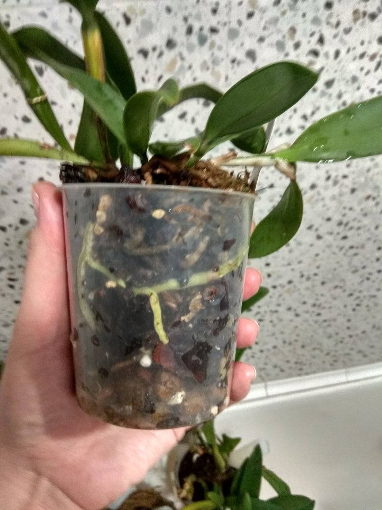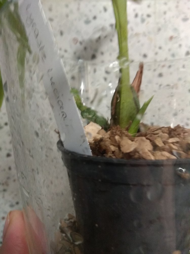 Такие же ощущения от Виктории, и история с пафом Дэя похожа. Почему-то многие башмаки от Швертера стали себя так вести... Думаю вернуть им коняшку в подкормку, но если сценарии так похожи - может быть, дело не в ошибках ухода?Снизу paph victoria mariae от Швертера, вверху Pinoccio из обычного цветочного. Пока отличаются только размером