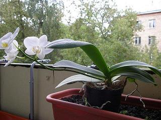 Продам в Москве цветущий фаленопсис. Размах листьев 18-20 см.Зацвел недели 2 назад. Взрослое адаптированное растение, хорошая корневая система. 2 пенька от цветоносов. Фото сделано вчера. Цена - 350 руб.