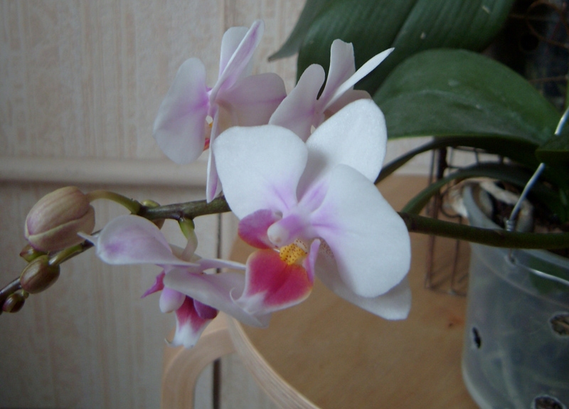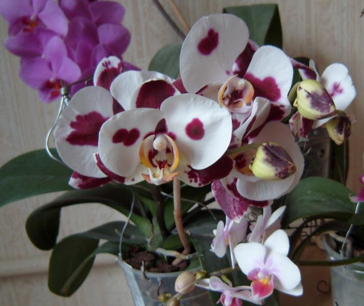 белая с вишневыми пятнами, ярко вишневая и 1 башмачек
