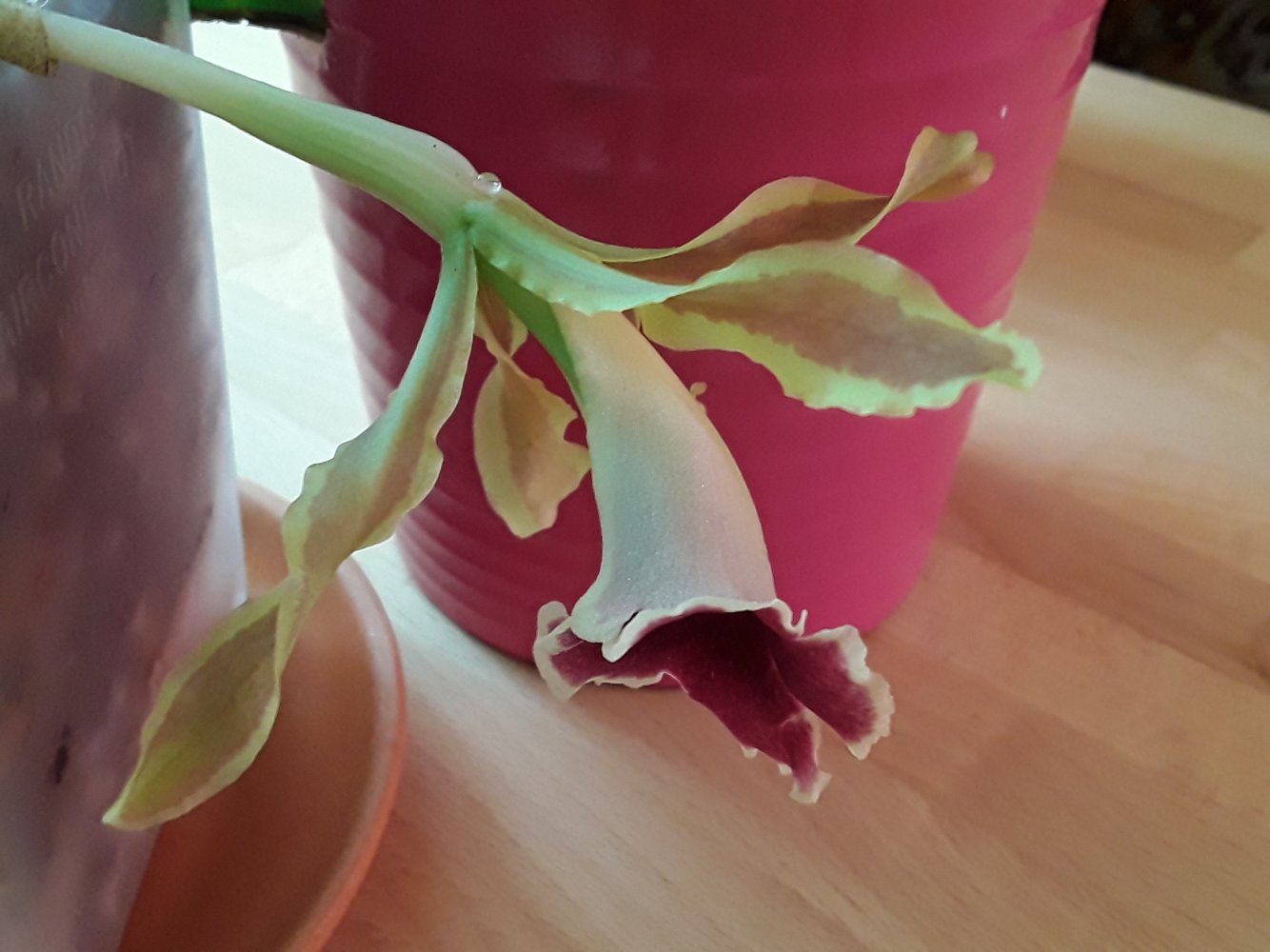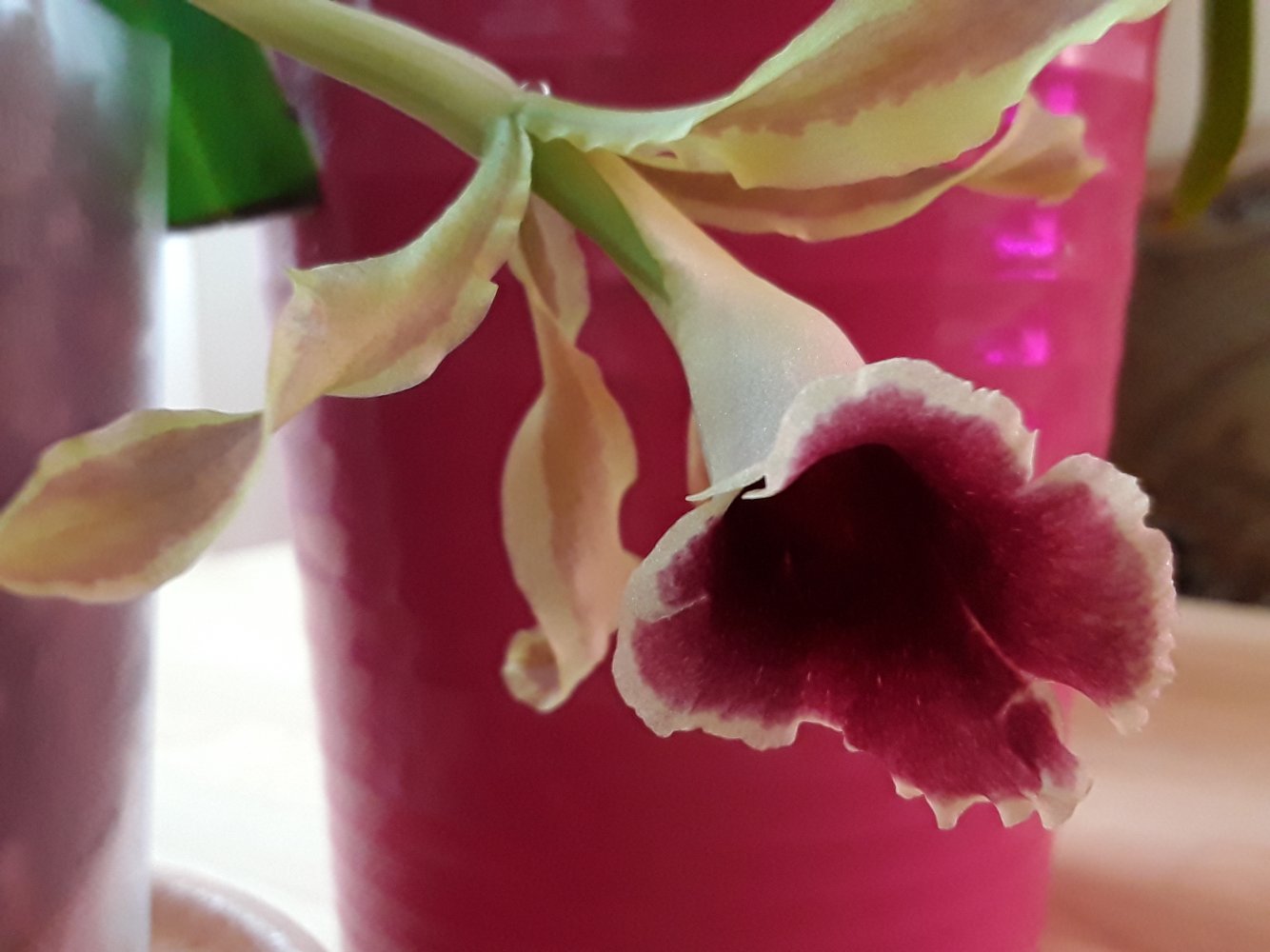MAESTRO В., спасибо!Но заслуга только в фото.Получила в последний привоз Эквадора,этой весной.Стояла в коматозе,уже пришла с ростиком,но он быстро сгноил верхушку.Просыхает,как и все трихопилии очень быстро.Старалась поливать часто.Корней новых не видела,бульбы были сдуты.Поэтому ,увидев цветонос ,очень удивилась.Она в числе растений моржей,что выставлены на балкон с апреля,в снегопад убирала)),посажена в серамис для орх.Но на лебединую песню не похоже,она не сдувает бульбы,явно адаптировалась.К слову, эквадорцы у меня идут с периодом стагнации.Только сейчас надула бульбы ликаста,пошли хорошие корни,масдевалия передумала умирать.