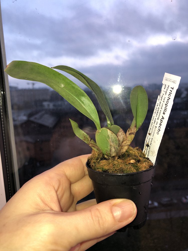 Недавно попала ко мне Трихопилия Apache.Размер самой большой бульбочки 2 x2,5 см.😏От Швертер.Сидит в своём горшочке.Вот думаю пересадить,но пока не решила как и во что,в какой субстрат?