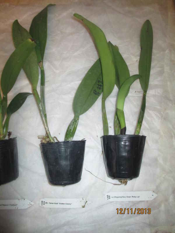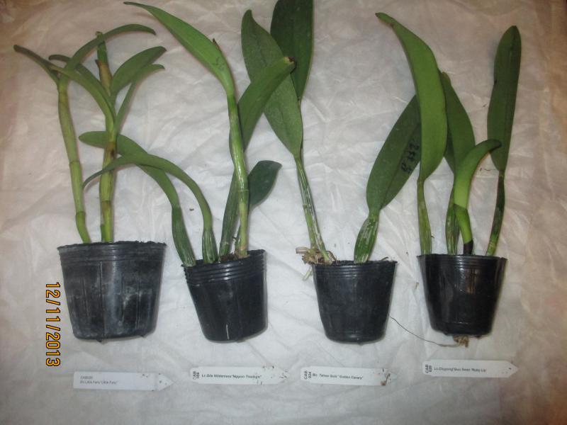вторая небольшая растень Lc. Hwa Yuan Angel Little Beauty AM OSROC самая первая слева Blc. TriumPhal Coronation Seto, затем замена Blc. Zag. Zue в прайсе ее не нашла как и какого цвета понятия не имею (у нее молодые корешки и вылезли по дороге), потом Blc. Sanyung Ruby