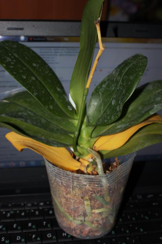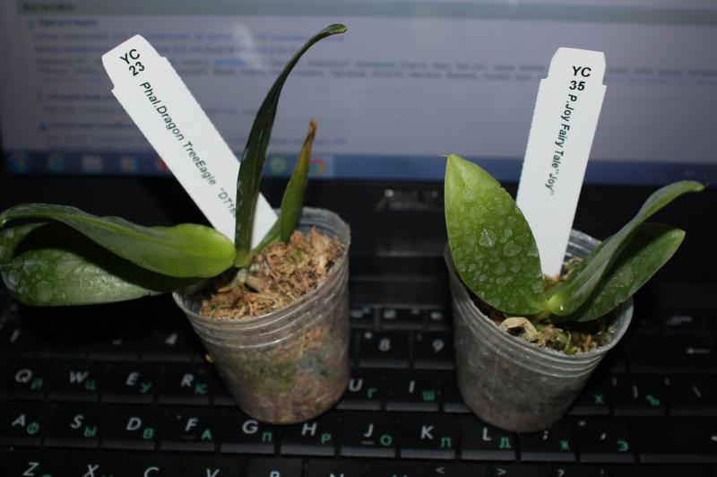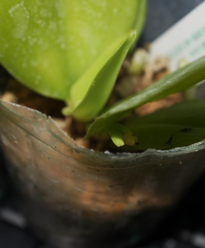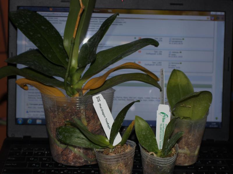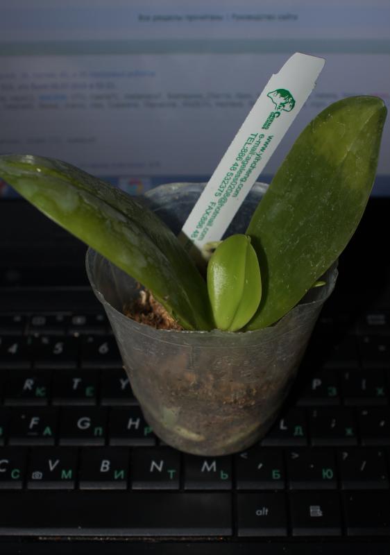 Вчера получила Phal. Penang Girl x Dragon Tree Eagle, размер В, сегодня стала пересаживать, обнаружила цветонос с бутоном, буду надеяться, что вытянет цветение.