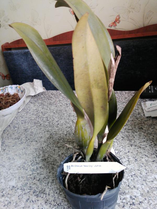 C. forbesii Много бульб сморщенных, пересушена, есть новый рост, некоторые листочки желтые. Каттлея цвела ранее. В целом хорошее растение.