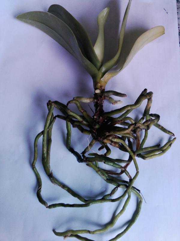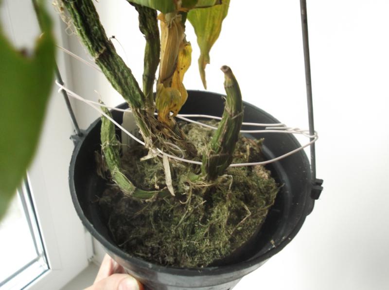 Растение взрослое, большое, возможно уже процветшее. Посажен в мох. Есть небольшой ростик-"почка" (не уверен, что именно этот рост выживет). Корни сухие.