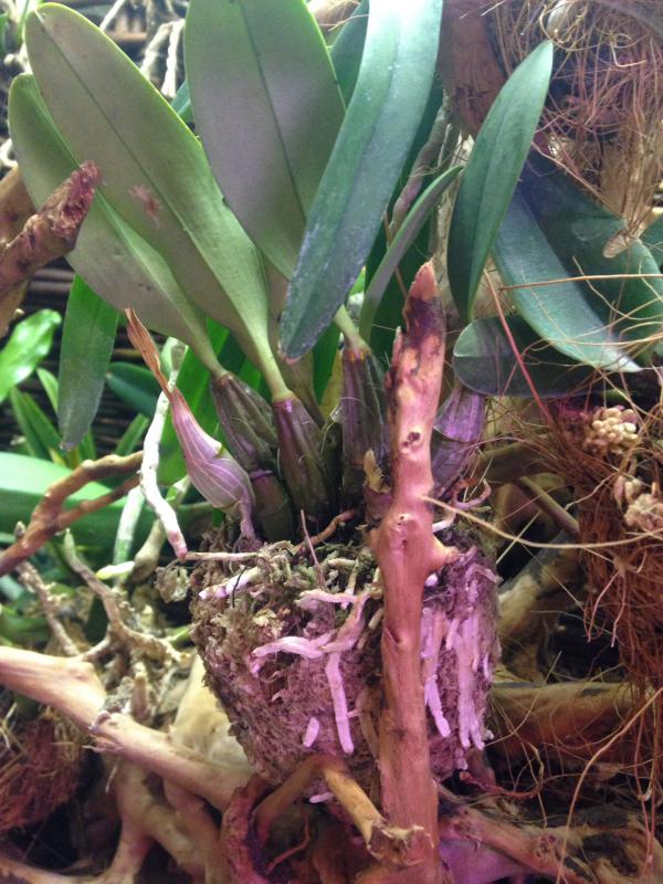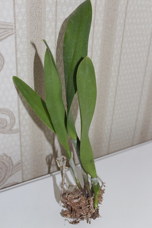 2) Slc. Little Hazel. Пришла во мху. Мох сухой. Каттлея сильно пересушена, на фото видно сморщенные листики. Новый рост дал пипки-корни.