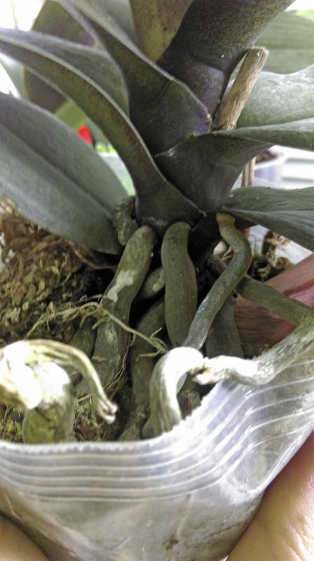 5) Phal. Tying Shin Classic (P.Tyiny ShingJaguar x P.Lobbii). Пришли мама и детка, во мху, сухие. Листья мамы пересухены очень и желтеют, похоже маму теряем. Детка с бодрыми листьями. Корни большая часть на вид нормальные.