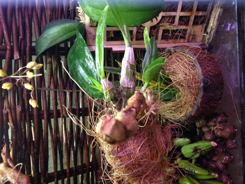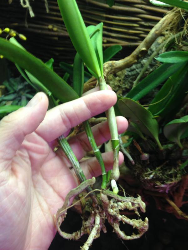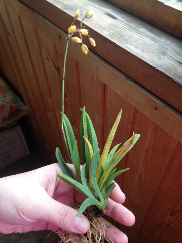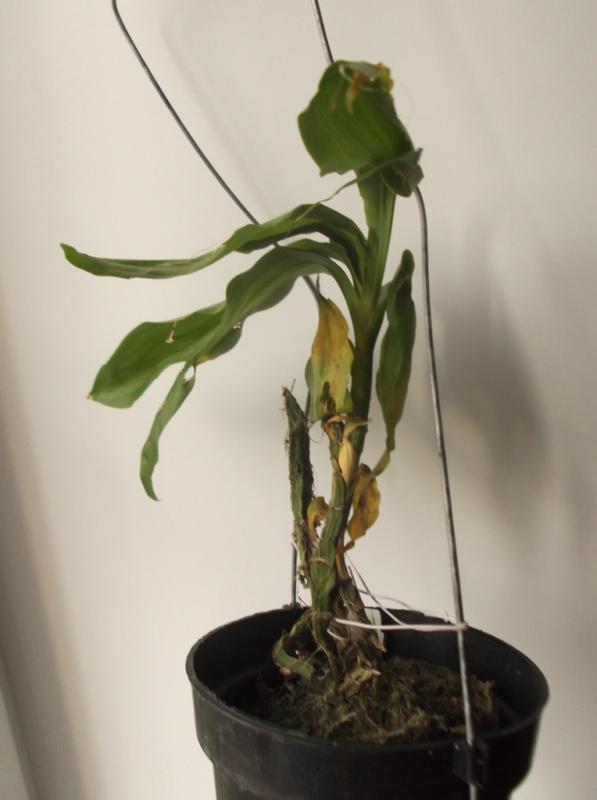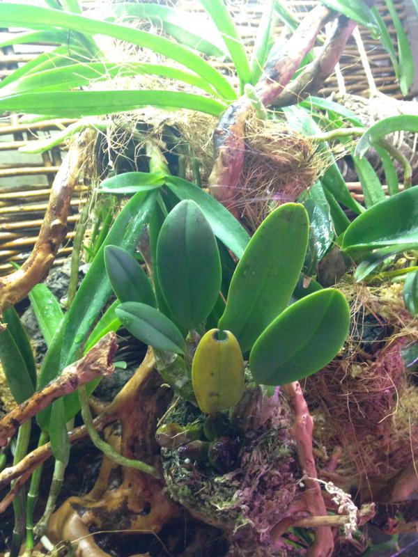 Доброе утро! Очень смущает Oncidium.peloric-она же зелемния мидас, пришла во мхе, в пластиковом горшке, с цветоносом, пару листьев были желтые, на данный момент листья продолжают желтеть, вытащила из мха, завернула в коко волокно, и в кокосовый горшок, поставила в орхидариум, у меня там 6 штук толумний, все чувствуют себя замечательно, что делать с этой малявкой не знаю, очень хочется, что бы выжила. Девушки, посоветуйте как быть. К каттлее вопросов нет, пришла так же во мхе, корни хорошие, у меня катюшкам хорошо, за нее не переживаю. Den. Aggregautm тоже пришел во мхе, в пластиковом горшке, корни хорошие, правда несколько листьев желтые, посмотри, что будет дальше