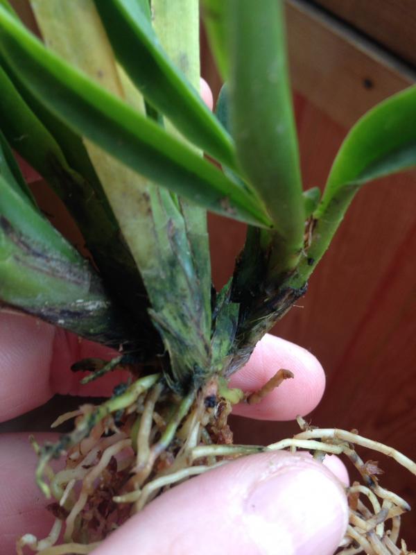 Blc.Keowee 'Vi-Galaxy' Три бульбы, цвела, самая первая бульба черного цвета и вместе с ней резома, будем удалять. В целом неплохая каттлея, буду наблюдать за дальнейшим состоянием.