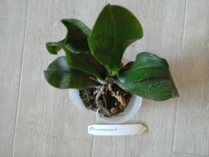 Phal. Joy Spring Canary - листики сильно помяты, но есть растущие листик и корешки.