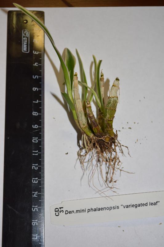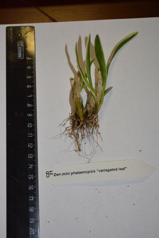 1) Den. mini phalaenopsis 'variegated leaf'