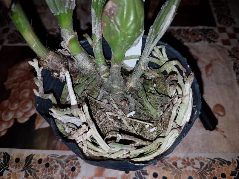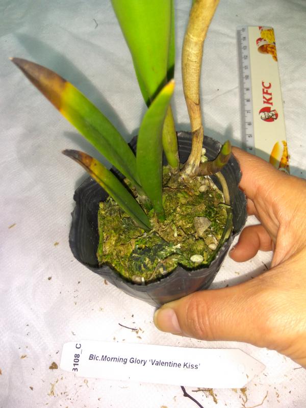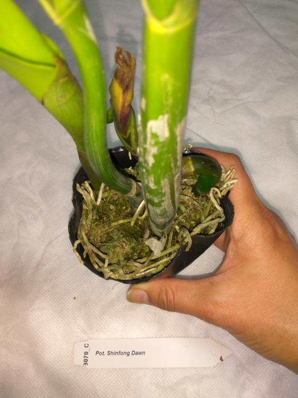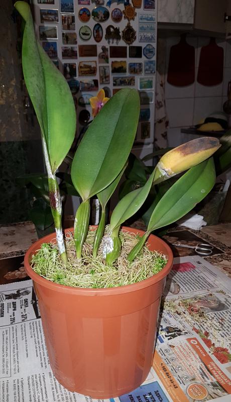 Пришло чистенькое, взрослое растение с 5ю здоровыми листьями и цветоносом. Нижний листик надломлен при транспортировке. Живности не обнаружила. Мох слегка влажный, корней много. Очень довольна! Надеюсь, не отсушит цветонос и через недельку-другую порадует цветением.