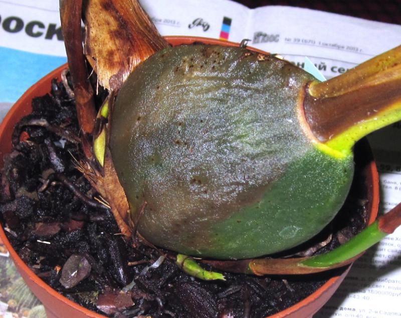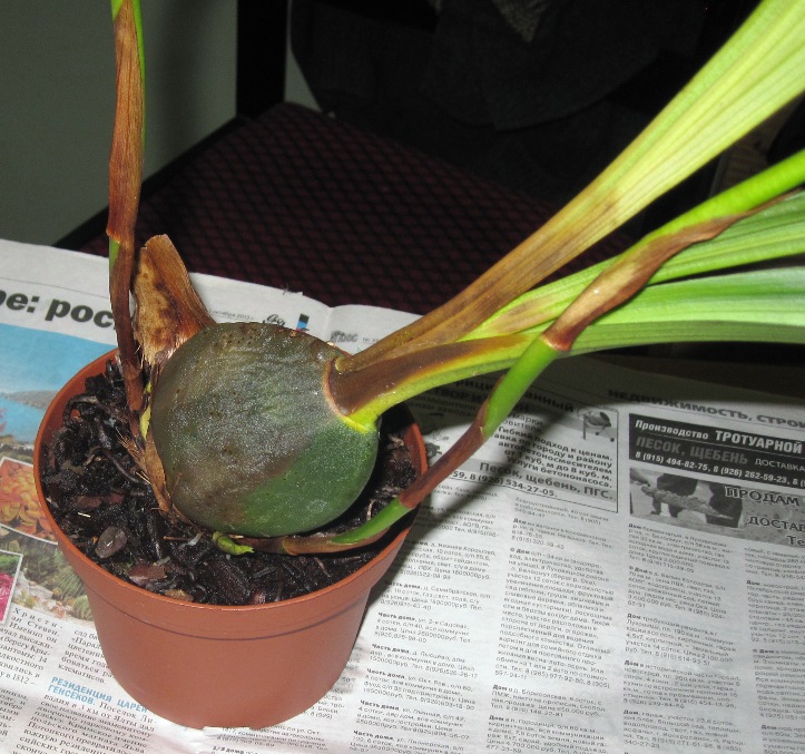 Появилась еще одна проблемная ликаста, чериш (гошима) за лето ушли (покоричневели стандартно, без гнили) и были удалены две небольшие старые бульбы. Осталась одна единственная крупная и рост (тоже замещающий, основной отмер весной). Теперь эта бульба ровно пополам оказалась коричневой и мягковатой. Шансов без нее у роста никаких нет, корни еще не выдал, и размер всего сантиметров 6 в высоту (даже ниже старой безлистной бульбы). Что можно предпринять? или просто смотреть и надеяться что это не агония..