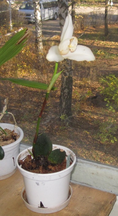 Я в шоке. Не суеверен, но зарекусь хвастаться цветами, которые не сам зацвёл. Стоило только забрать с выставки роскошнейшую ликасте скиннери белую и похвастаться ею, так наказание за спесь (не моё! купленное!) не замедлило наступить. Я оттащил её на работу, там на окне попрохладней, чем дома, и вот вчера вижу