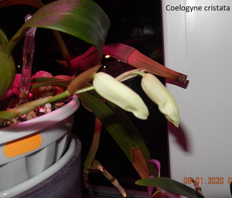 Весной новые росты растут, а осенью от свежих псевдобульб начинают расти цветоносы. Внешне молодые росты и цветоносы выглядят одинаково, но весной кристата обычно не цветет. Мхом ростки сверху прикрывать не надо, под него можно положить