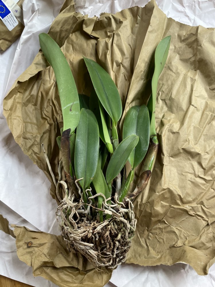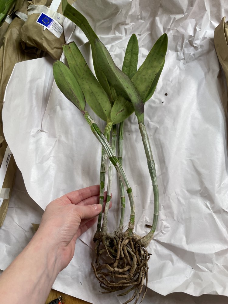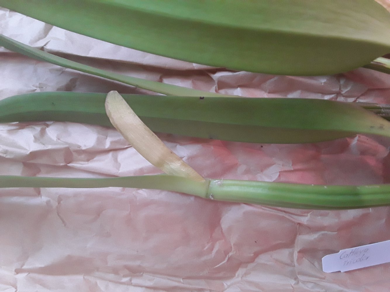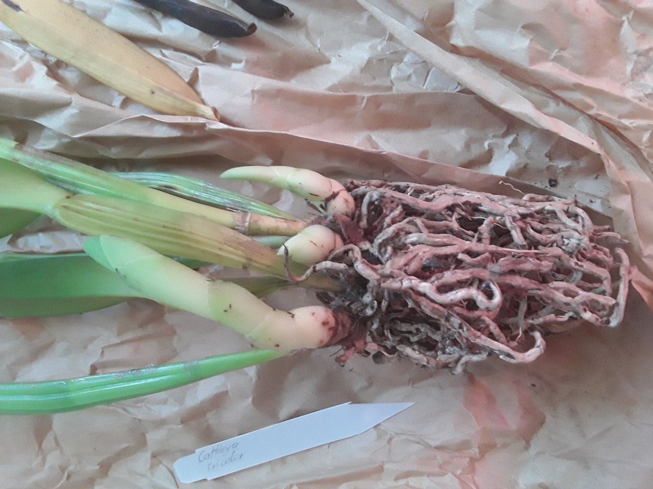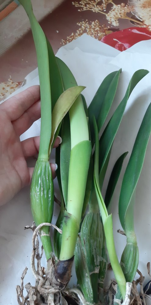 1). Cattleya iricolor - супер растение, взрослое , без пятен на листьях, один рост с чехлом, 3 молодых новых роста. Корни сухие, но для адаптации их должно хватить.