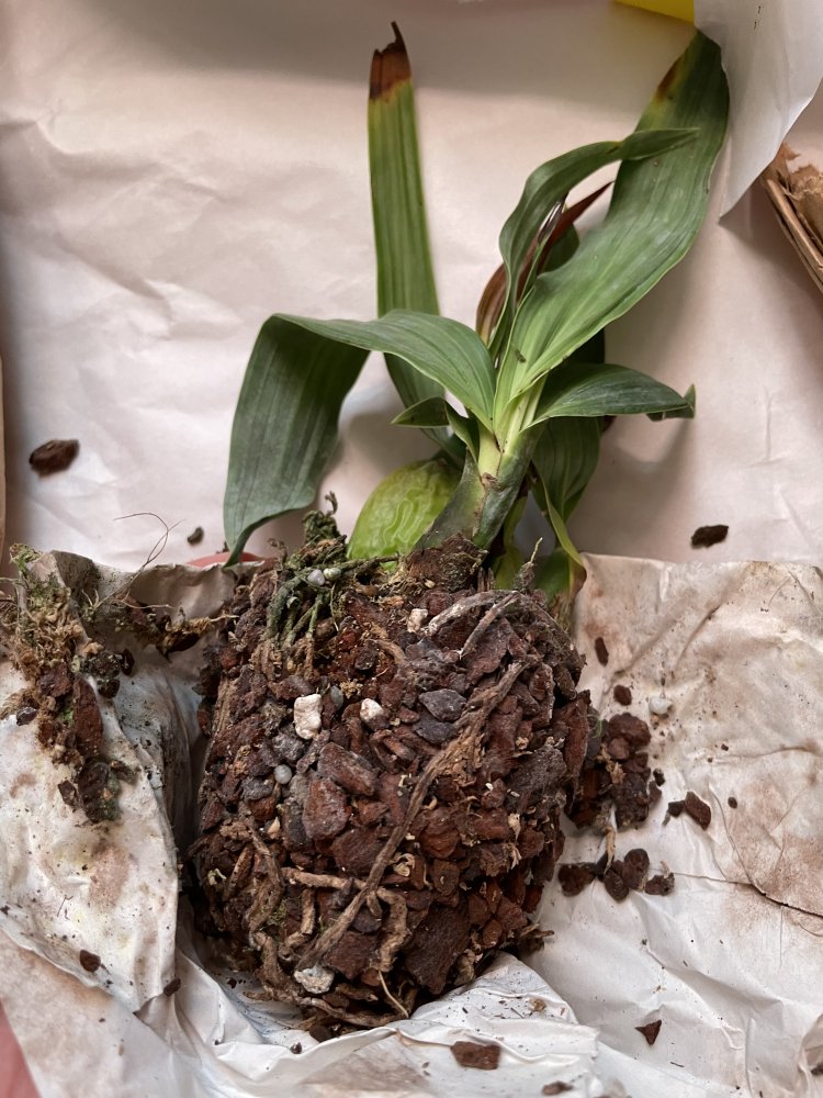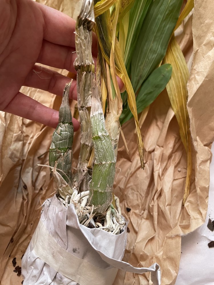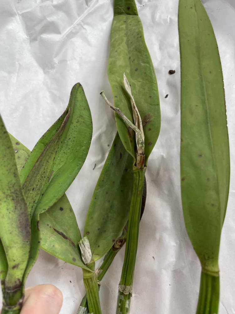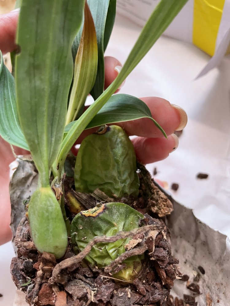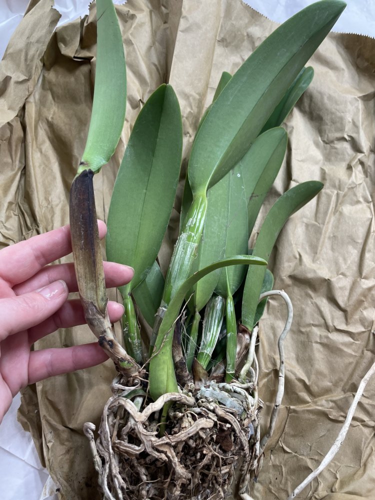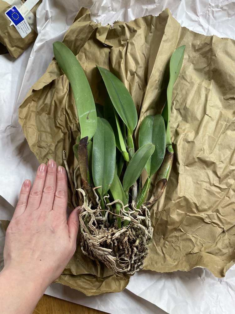 1). Cattleya iricolor - супер растение, взрослое , без пятен на листьях, один рост с чехлом, 3 молодых новых роста. Корни сухие, но для адаптации их должно хватить.