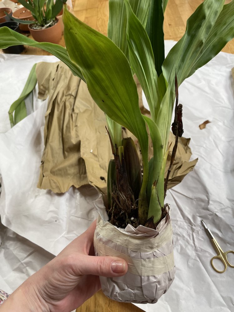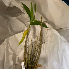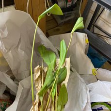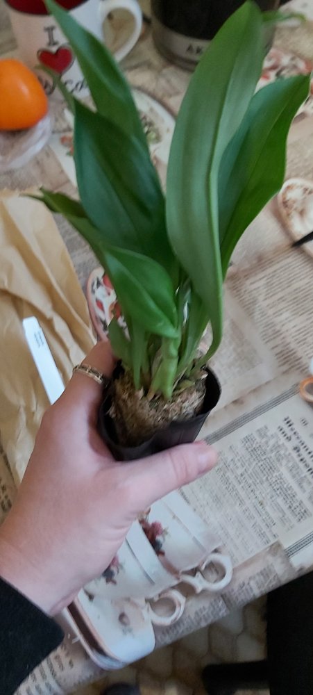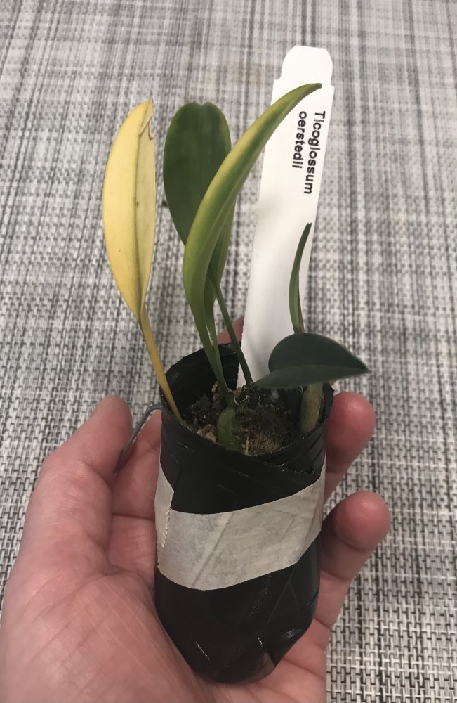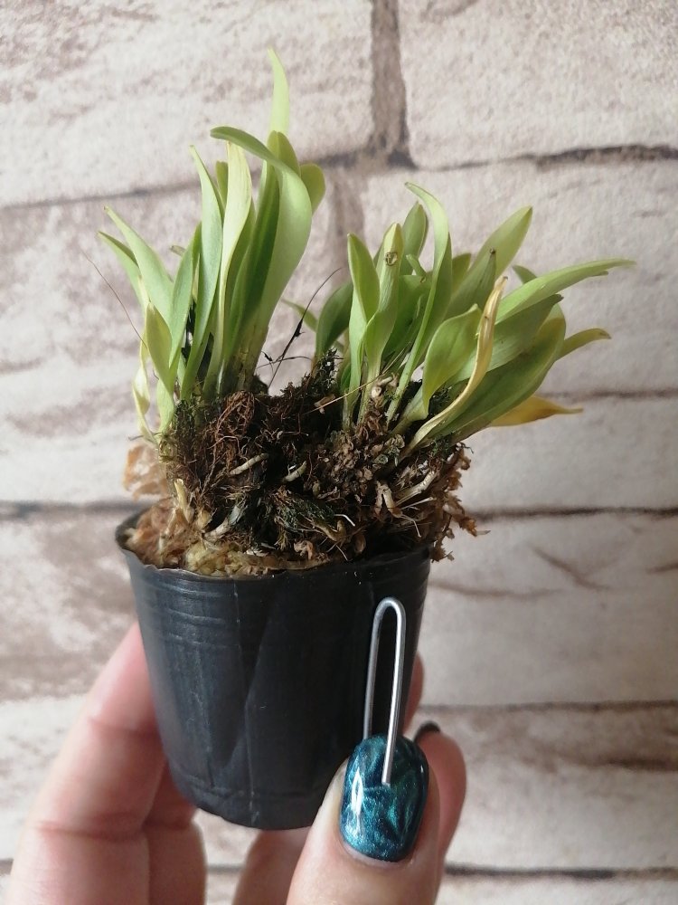 5). masdevallia Confetti - взрослое просушенное растение, большая часть листиков отсутсвует, из оставшихся парочка уже сухие и желтые.