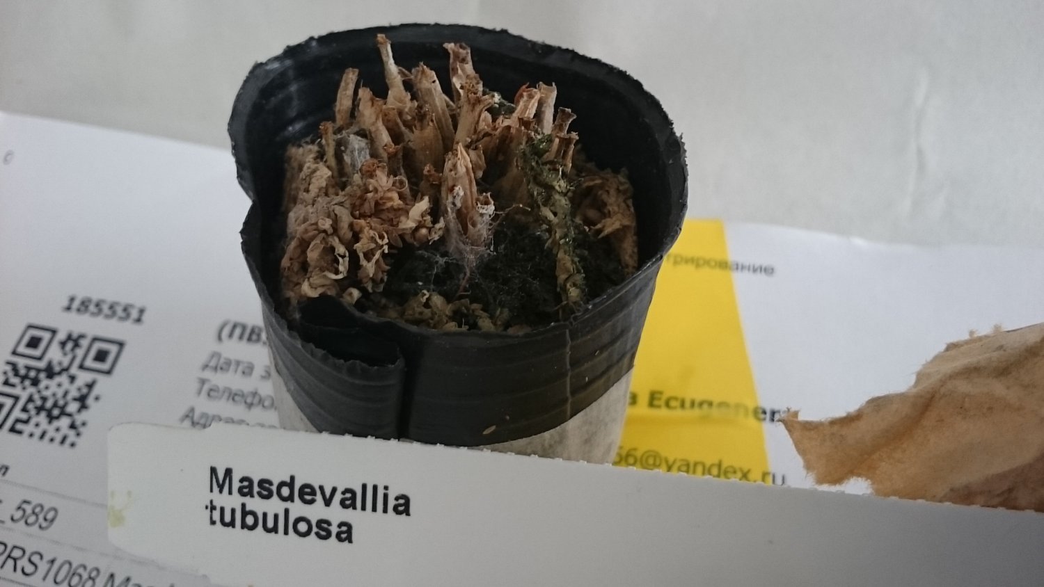 4). masdevallia lychniphora - миниатюрное взрослое растение, просушенное, отмерших листиков в центре прилично.
