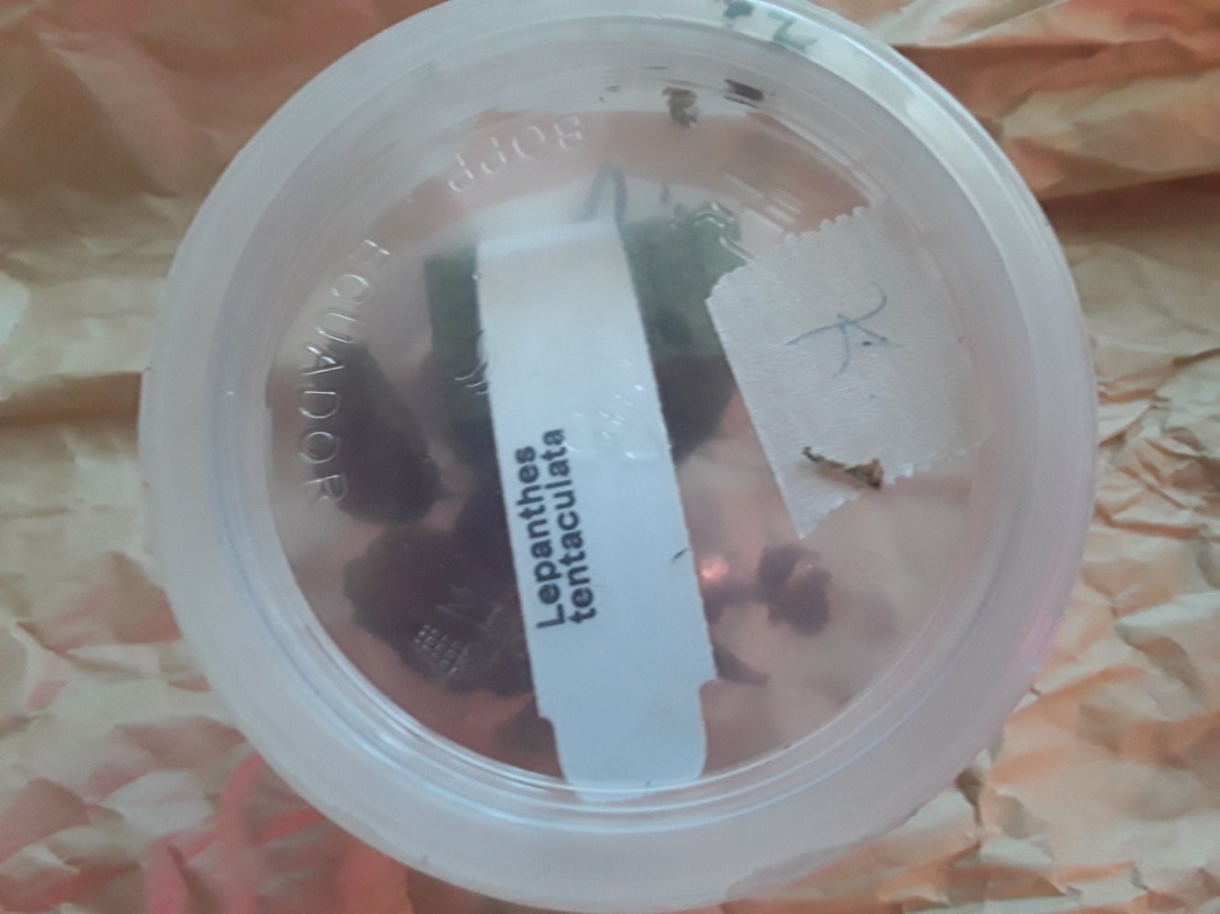 6). Lepanthes tentaculata - миниатюрка на блоке в баночке, очень усушенная, даже цвет листье изменился на красный, что очень плохо, растение может не выжить.