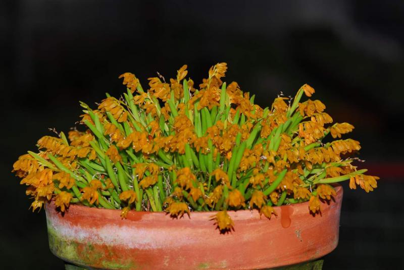 Также хорошо растение растет в горшке или корзинке. В качестве субстрата можно использовать кору хвойных пород деревьев средней фракции. Если влажность воздуха низкая, и частый полив не возможен, то можно сделать субстрат более влагоемким при помощи добавления новозеландского сфагнума, или перлита и т.д. В подобном случае следует не допускать заболоченности и слеживания субстрата.