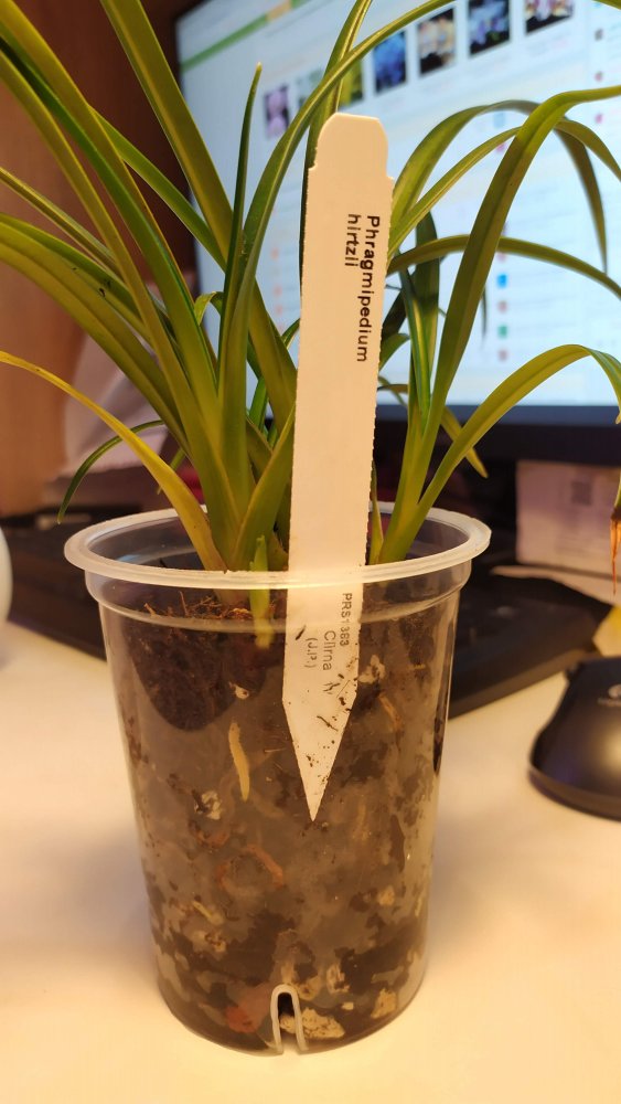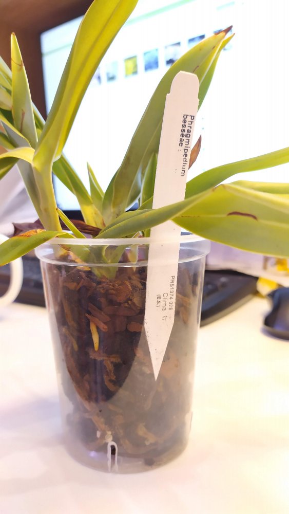 @Lucienne, да этот самый лось - покупался как один из самых миниатюрных фрагов на выставке у Эквагенеры в 2019)). Это Phragmipedium Elizabeth March. Поначалу после покупки корней (да и сам) было настолько мало, что посадила в горшочек 8 см диаметром. Но он все равно тогда же процвел, таким крошкой. А потом следующая розетка стала значительно крупнее расти, пересадила в горшок побольше. Ну и дальше он как пошел вымахивать... На сегодня он по размерам с крупные гибриды Ковача, горшок на 2 л весь заполнен корнями... Цветет, кстати, очень охотно. Хоть летом не смог процвести, сейчас снова у него бутон увидела в другой уже розетке. Ничего особенного с ним не делаю, ничем специальным не кормлю. Все как для всех фрагов. Но тоже в воде как и все...Кормлю, кстати, фраги не часто. Единственное, что раз в год при пересадке всем сверху добавляю гранулы биогумуса. Ну и что то из кальция - ракушки или коралловую крошку. Часть фрагов недавно пересаживала - раз не процвели, стали новые розетки активно растить, а им заглубление потребовалось. Поэтому старые розетки у многих либо полностью уже отмерли, либо по большей части. Вот он прошлым летом цвел.