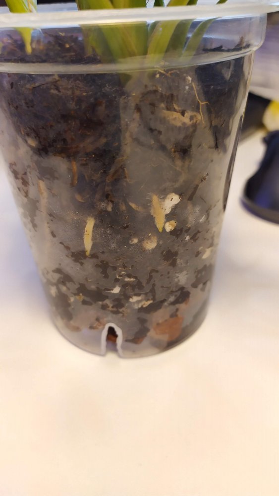 Кстати, еще одно мое наблюдение. Все замечали, что если орхидее что то не нравится в субстрате, она начинает корни наружу растить, вне горшка. Понятно, что все индивидуально, но в общих чертах смысл понятен. Так вот в случае с фрагами, если на дне вода - они наоборот все корни туда растят. А которые стоят в поддонах, не доставая до дна (где вообще одна вода без всего) - корни прорастают через дренажные отверстия и прямиком в воду растут, причем массово. Поэтому приходится их пересаживать, чтобы эти корни в горшок убрать, чтобы они дальше нормально росли (иначе все обломаются быстро).