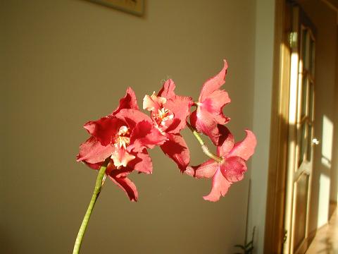 А можно я тоже похвастаюсь и покажу, как цвел Oncidium ornithorhynchum, полученный из Италии летом? Он пришел уже с цветоносом, а потом еще два цветоноса дал:) Вот: