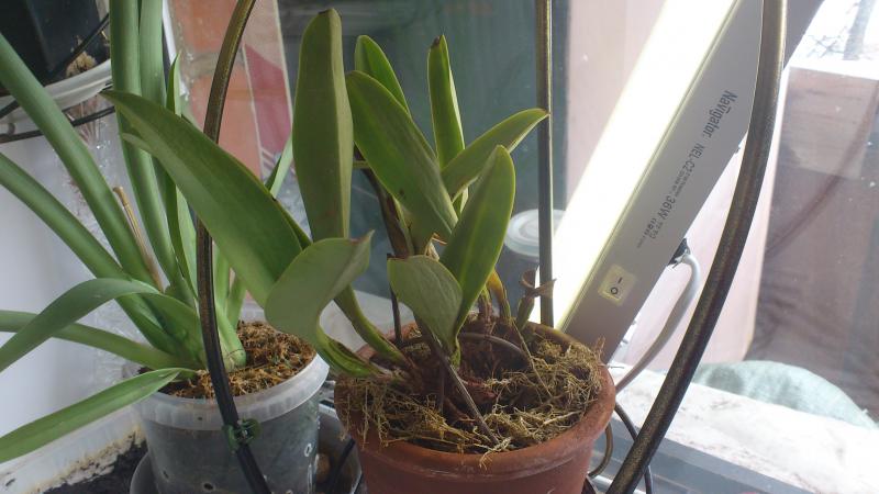 Всем доброго дня, прошу помощи у опытных реаниматоров. 23.12.12 получила C. Portia coerulea, деленка жирная, но не цветшая , много бульб, корни были сухие, обрезала, гнилей и прочей бяки нет, но на всякий случай протравила. Вобщем посадила в кору и немного мха сверху, опрыскиваю мох, подсвечиваю. Она сбросила несколько листьев, бульбы морщатся, остальные листья тоже начинают жухнуть, ни одного корешка не отросло и не проклюнулось, так же нет новых ростов и даже намеков на них! Что мне делать?Я бы продолжила в том же духе. Только постаралась бы повысить влажность вокруг растюхи, проливала бы ее чаще (если очень сухо в помещении) и если не сильно влагоемкий субстрат. На этапе отращивания корней можно воткнуть в чистый мох (если окна юг). Листья жухнут и бульбы сохнут, т.к. нет корней. Поэтому она тянет ресурс из себя же. Увеличивайте влажность, опрыскивайте, когда проходите мимо нее. Отрастит со временем корни. Орхи из Thaiorchidsource обычно быстро адаптируются.