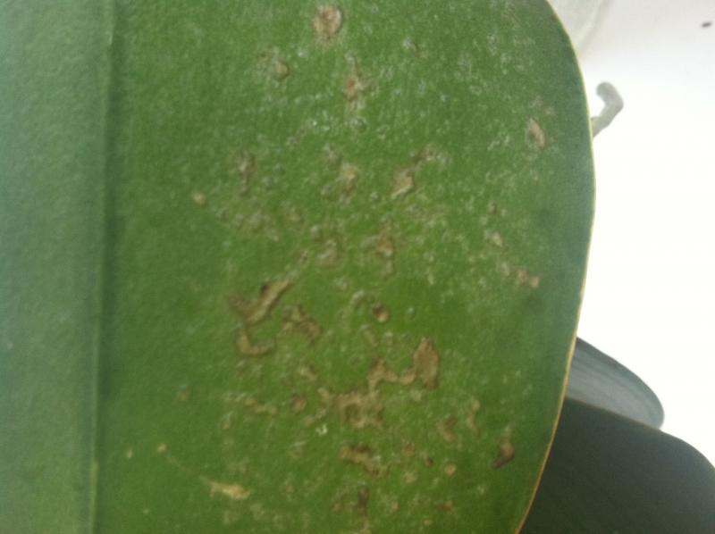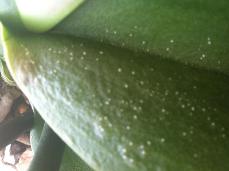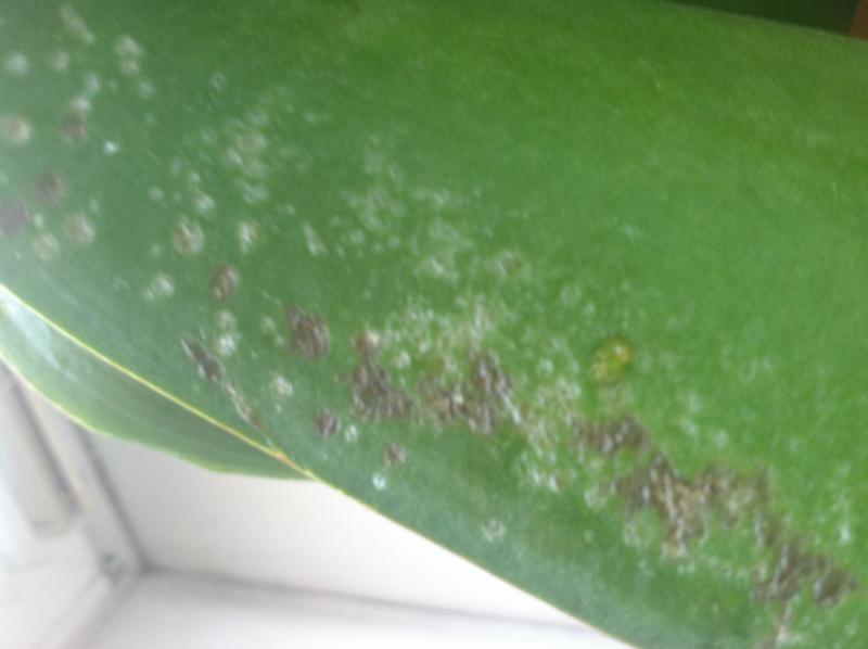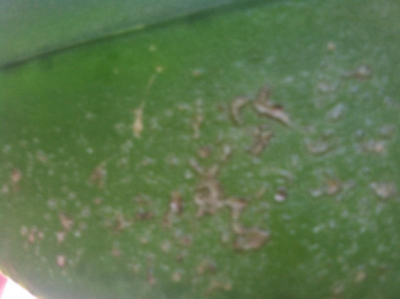 Пятна сухие,вроде все в той же поре,тургор немного снижен.Изнанка листа не изменена.День третий после посадки.