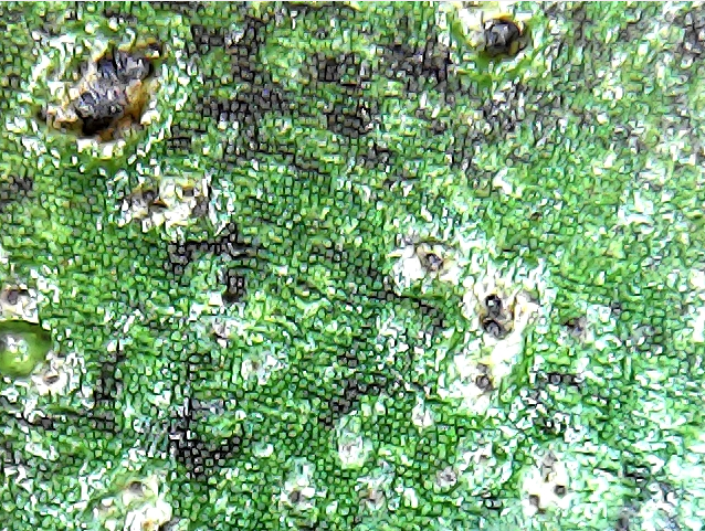 @MarichaVvv,черные участки под микроскопом - полностью умершие клетки. Это, видимо, участки листа со второго фото - сухие некрозные пятна. Зеленое месиво между ними - больные зараженные клетки, скорее всего, грибковое заболевание. Листья поражены глубоко изнутри, вероятно и стволик изнутри тоже поражен. Вобщем, протиранием листьев не отделаться. Нужно корни пролить комплексным фунгицидом, Фитолавин очень слабый препарат, профилактический больше. И эффект от него только разовый, второй раз уже даже бессмысленно обрабатывать, он не сработает. Обработайте Строби, Топаз, Превикур и т.п.