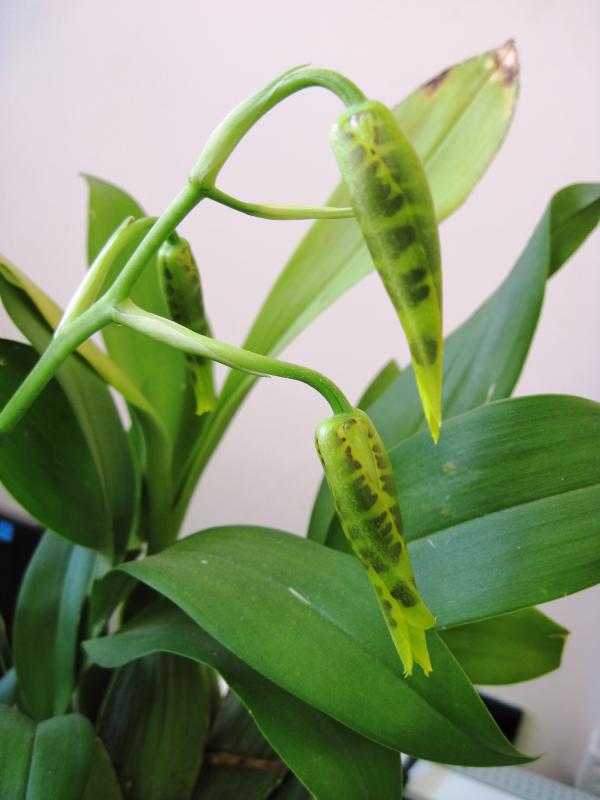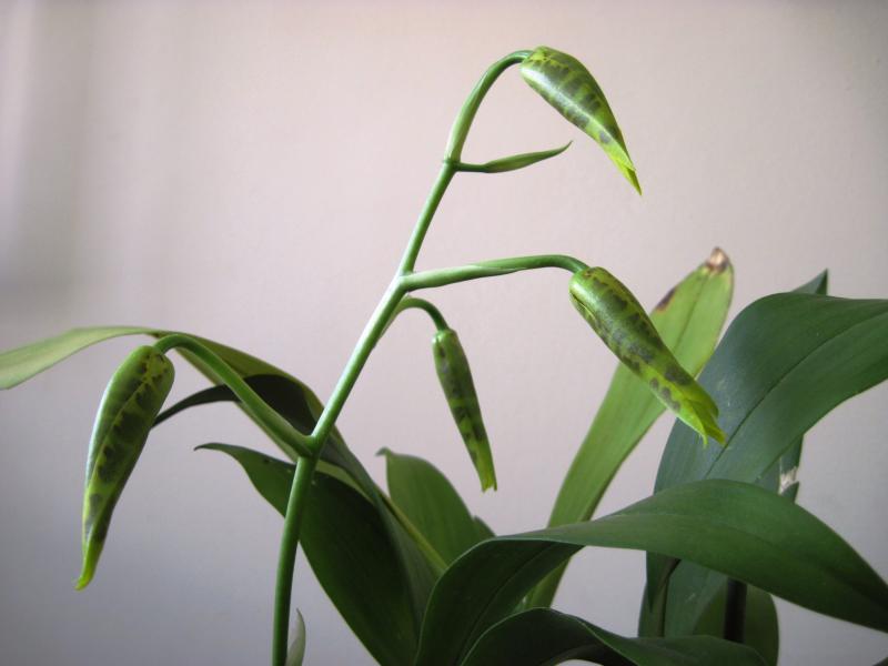 Товарищ, который удивил меня своей трудолюбивостью Dendrobium farmeri 'pink', вроде только недавно отцвел, а неделю назад заметила еще цветонос, сегодня взглянула и чуть не запищала от радости, 4 цветоноса и еще несколько почек набухли :025: от одного-то цветоноса был прекрасный аромат, а уж когда несколько зацветет, то будет вообще обалденный. Люблю этого товарища :girl_in_love: