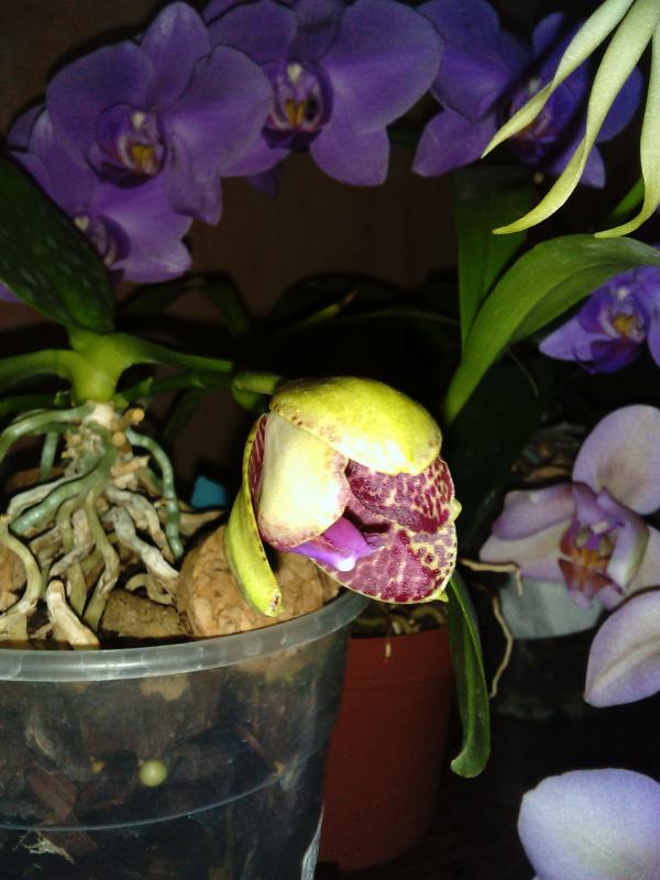 Толумния из Култаны. Получена 1,5 года назад. Это первая толумния, которую я смогла зацвести. Еще 6 пока в режиме роста. Насколько я поняла, они зацветают без особых бубнов, но зато только тогда, когда розетка достигнет размера цветения, не раньше. Сидят все одинаково, в маленьких горшках, крупных кусочках коры и серамиса. Полив раз в неделю после полного просыхания. Не опрыскиваю. Стоят на восточном окне без притенения. Любят солнце, загорают даже.