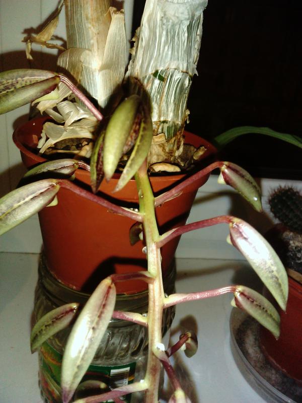 Самая-самая, цветоносы старые. Долго их держал в застывшем состоянии, но по осени они снова пошли в рост. Яркого света не любит. От перестановки под лампы как раз и засушил бутоны в первый раз. Когда убрала обратно на окно, то постоял и снова начал наращивать.
