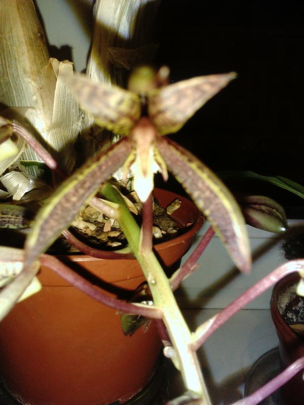 Купила его цветущим, второй цветонос на этой же бульбе засушил. На другой бульбочке был маленький, сантиметра 2 всего. Долго (больше месяца) сидел без движения, а сейчас начал расти.