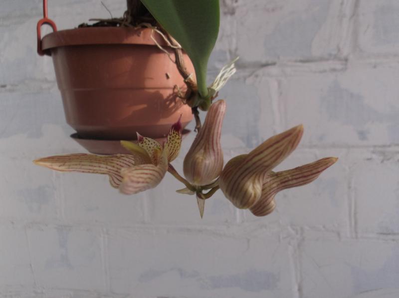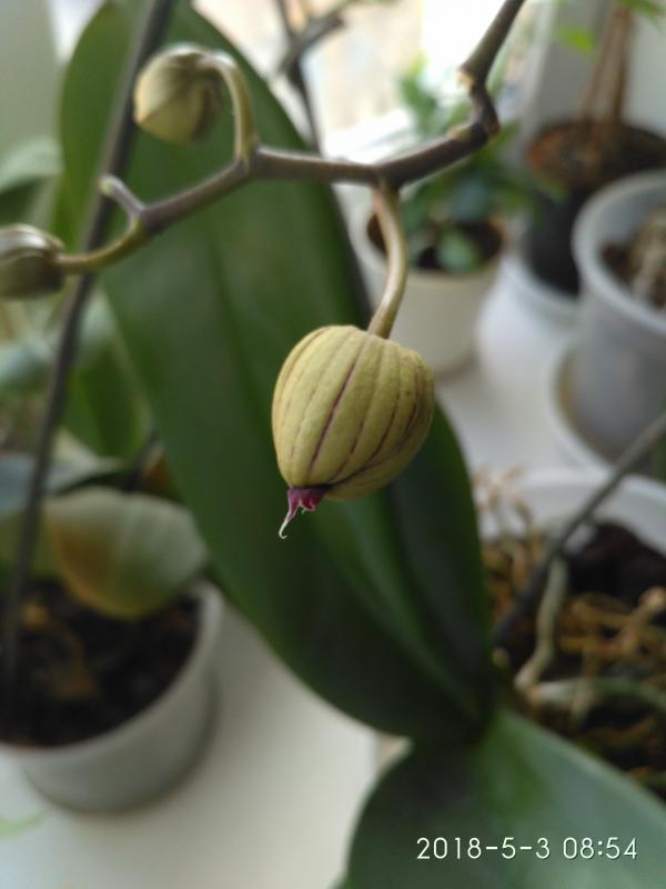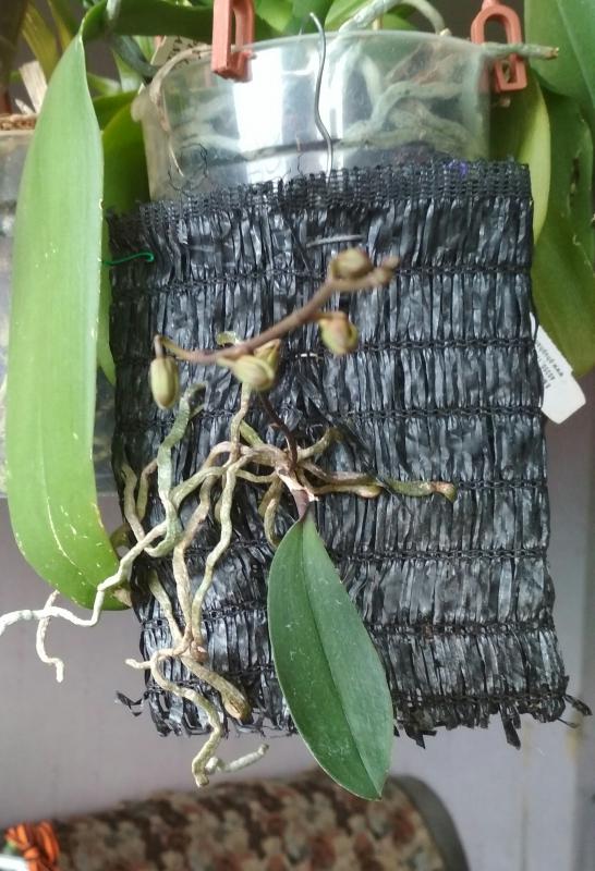 юllа, у меня он уже два года. По приходу выглядел очень печально. Корней не было совсем. Долго мучился, то отращивал, то отсушивал. Пока не посадила в небольшой горшочек, снизу орхиата, сверху мох. Теперь и не трогаю, только верхний слой мха меняю периодически. Поливаю раз в неделю. За это время просыхает до хруста. Стоит на восточном окне, немножко досветки на него попадает.