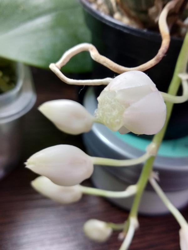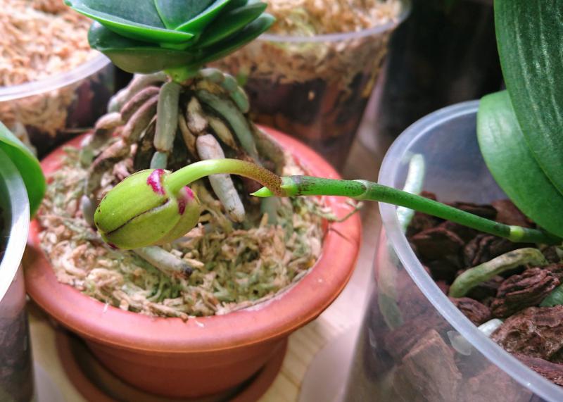 Очень удивил пришедший от Pom Phal. Mituo Diamond сам с ноготок выпустил цветонос, но первых 2 бутона засушил, но на этом не остановился ростит новых 2.